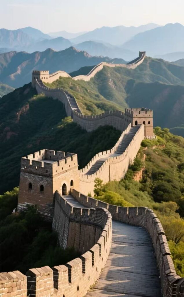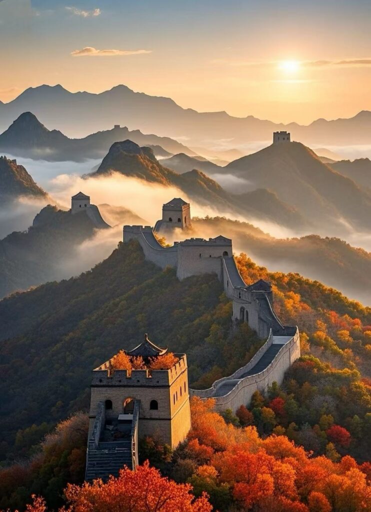 雄伟的长城在山峦间穿梭,宛如一条巨龙腾云驾雾。