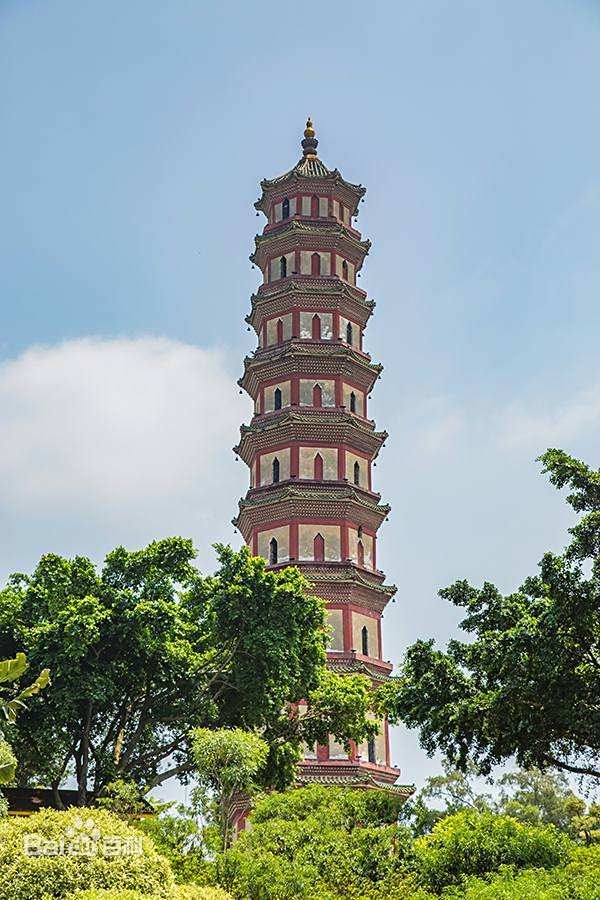 莲花塔(Lotus Pagoda),原名文昌塔,为风水塔,位于广东省广州市番禺区石楼镇莲花山北主顶峰上,占地面积为65.12平方米,与琶洲塔、赤岗塔合称为广州三塔。莲花塔为楼阁式砖塔,平面作八角形,外观高9层,内为11层,高约50米,用青砖砌筑。塔层夹壁,砖砌梯级,绕壁而上可达顶层,每层均设有窗户。莲花塔是前来广州的古代外国商船进入珠江口后见到的第一座塔,故有“省会华表”之称。1989年6月29日,莲花塔被广东省人民政府列入第三批广东省文物保护单位