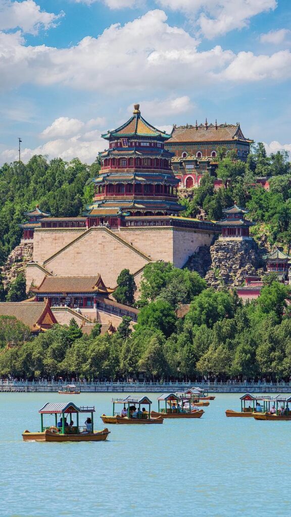 颐和园,中国清朝时期皇家园林,前身为清漪园,位于北京市西郊海淀区新建宫门路19号。其利用昆明湖、万寿山为基址,以杭州西湖风景为蓝本,汲取江南园林的某些设计手法和意境而建成的一座大型天然山水园,也是保存得最完整的一座皇家行宫御苑,被誉为皇家园林博物馆。全园占地3.009平方千米,水面约占四分之三,由万寿山、昆明湖组成。园中分布着点景建筑物百余座、大小院落二十余处,古建筑三千余间,面积近7万平方米。古树名木一千六百余株。