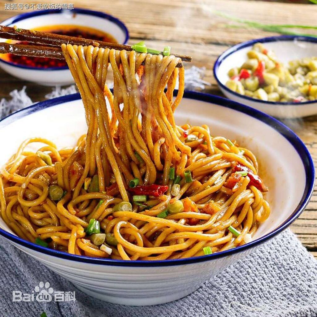 热干面(Hot dry noodles)是武汉最出名的小吃之一,有多种做法,其采用碱水面,并以食油、芝麻酱、色拉油、香油、红油、细香葱、大蒜、萝卜丁、酸豆角、卤水汁、生抽、醋等为辅助材料。热干面色泽黄而油润,味道鲜美,由于热量高,也可以当作主食,营养早餐,补充人体所需的能量。热干面与山西刀削面、两广伊府面、四川担担面、河南烩面并称为“中国五大名面”,是颇具特色的过早小吃。