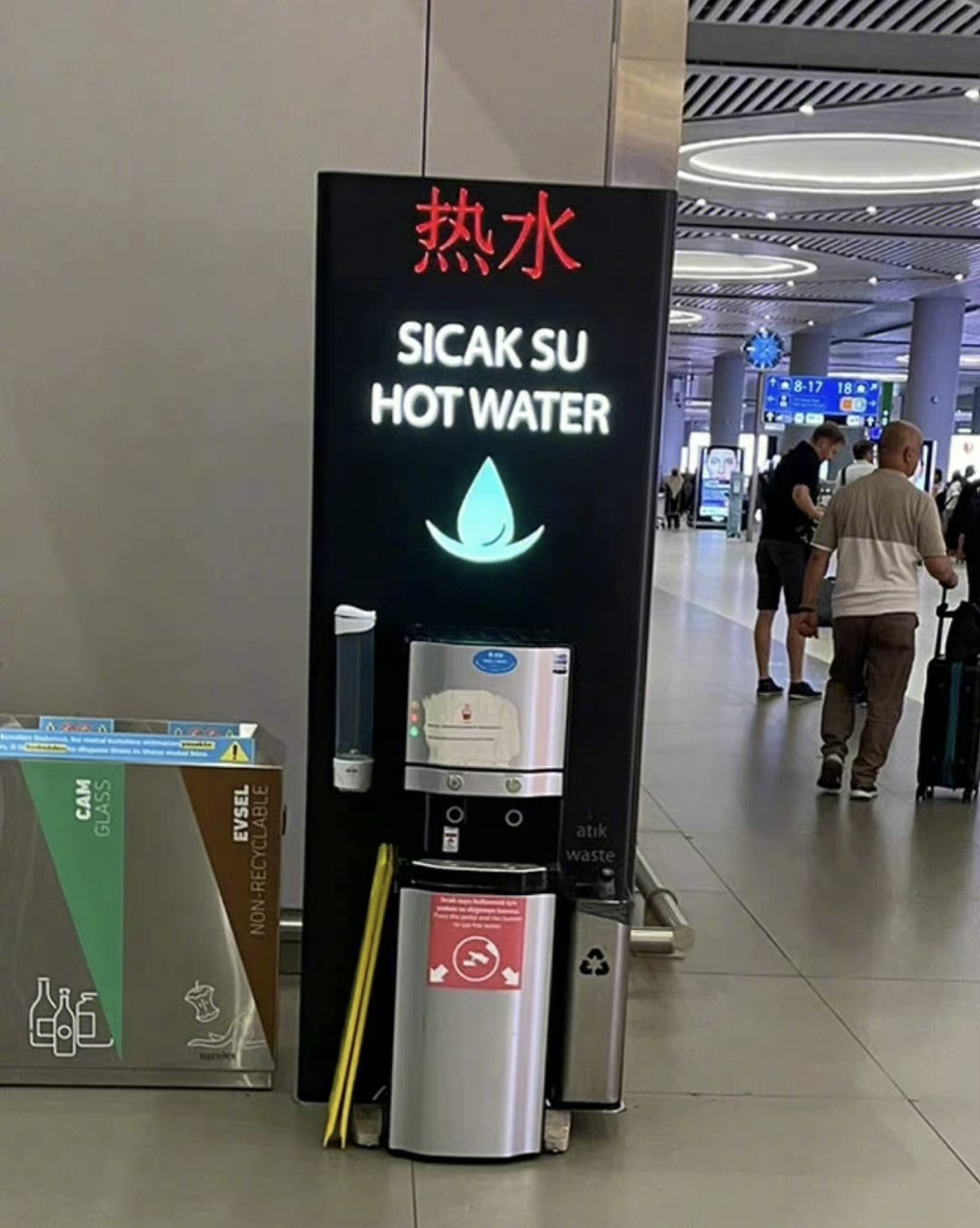 最近中国网又在土耳其机场发现了一台热水饮水器。